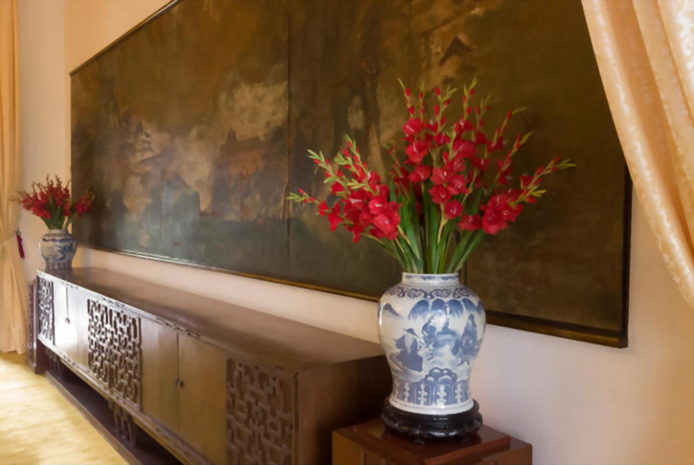 Since the early times of construction phase, ceiling was a part of the aesthetics. But in the present day ceiling is a neglected space in room design, but it shouldn't be so. Rather than a plain paint coating, a floral patterned ceiling is like enjoying a springtime picnic. Oyeexpress suggests you painted black ceiling mirrors and the dark hardwood floors in this modern urban space.